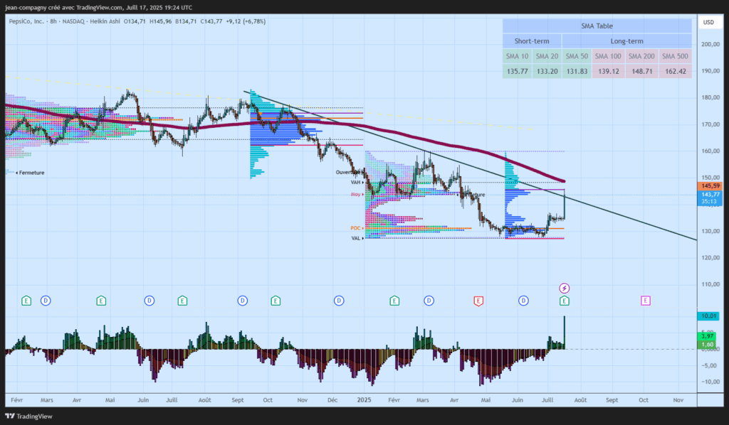 Passer à l’achat Pepsi colas sur les futur supports 100 et 90 $ . En prévision d ‘un rebond de fin du cycle de baisse.