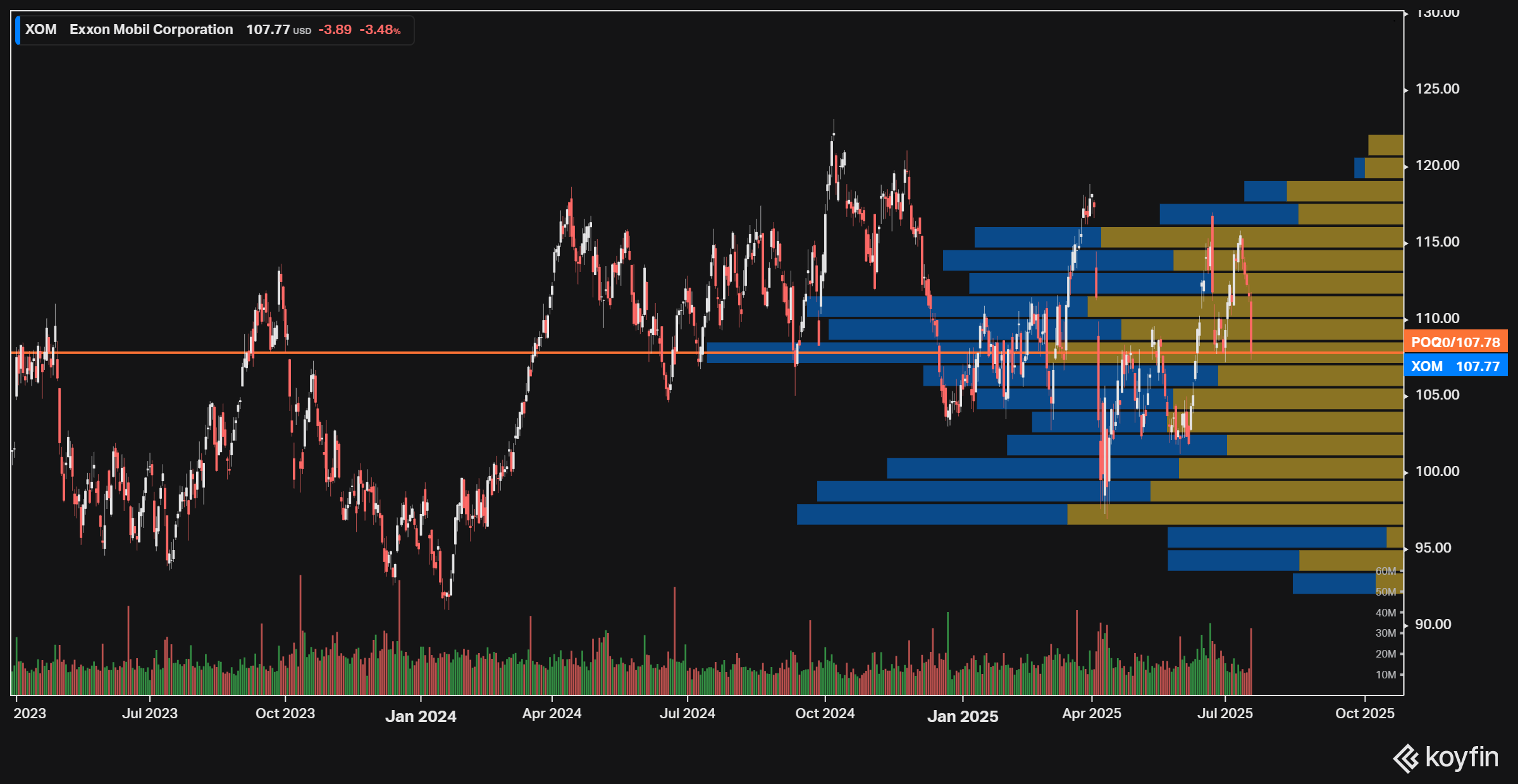 Exxon Mobil reste une valeur majeure et résiliente du secteur énergie, appréciée pour sa solidité financière et son dividende. La configuration technique actuelle suggère une consolidation sous la MA 200, agissant comme barrière. Une clôture durable au-dessus des 114 USD ouvrirait la voie à une reprise haussière vers 120, voire 126 USD. À défaut, il faudra rester vigilant face à tout repli sous 100 USD, qui remettrait en cause la dynamique favorable à moyen terme.